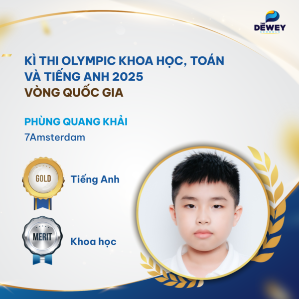 Bảng vàng thành tích của The Dewey Schools Ocean Park tiếp tục được nối dài với những dấu ấn đáng tự hào trên các đấu trường học thuật trong nước và quốc tế. Trong mùa thi vừa qua, học sinh Dewey đã xuất sắc giành hơn 50 giải thưởng tại Olympic Toán học quốc tế TIMO và Olympic Quốc tế Khoa học, Toán & Tiếng Anh ASMO, qua đó khẳng định nền tảng học thuật vững chắc cùng hành trình học tập và nỗ lực bền bỉ của TDSers.