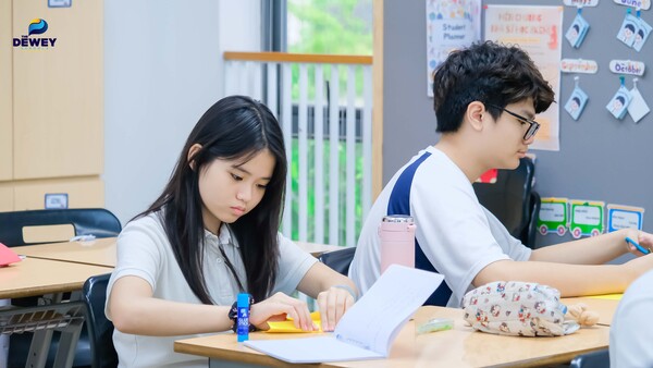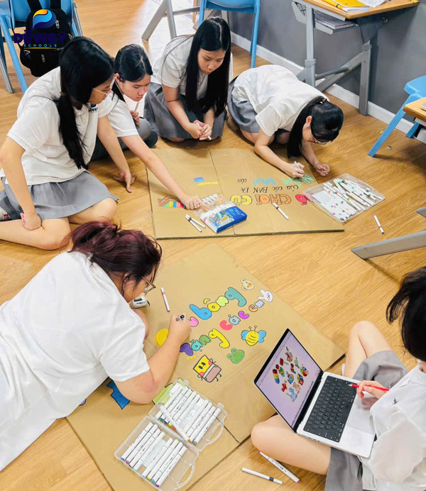 Ngay từ khi mới bước chân vào lớp 6, điều đầu tiên các con được học trong môn Văn-Tiếng Việt không phải là những khái niệm khó nhằn hay một lý thuyết khô khan. Cuốn sách mở ra cho con một câu hỏi hết sức gần gũi: “Vì sao người ta làm ra tác phẩm nghệ thuật?”. Giờ học Văn-Tiếng Việt tại The Dewey Schools thật lạ, bởi lẽ mỗi tiết học đều bắt đầu bằng những câu hỏi: