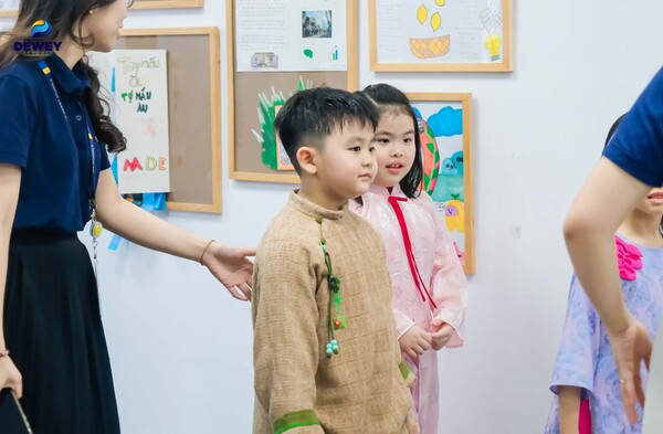 Khuôn viên Dewey Cầu Giấy sáng thứ 2 trở nên rộn ràng hơn hẳn bởi những ánh mắt tròn xoe đầy vẻ tò mò của các bạn nhỏ lớp Tiền tiểu học.