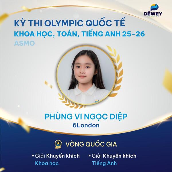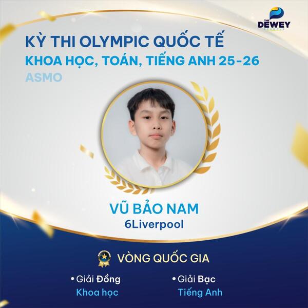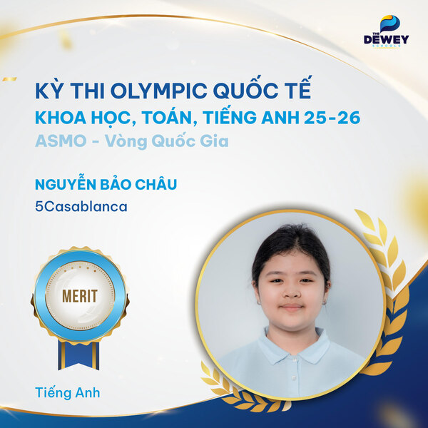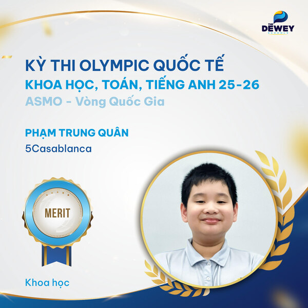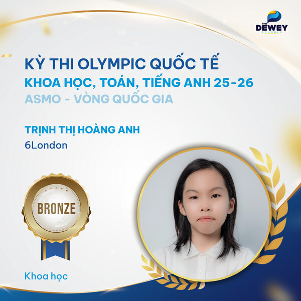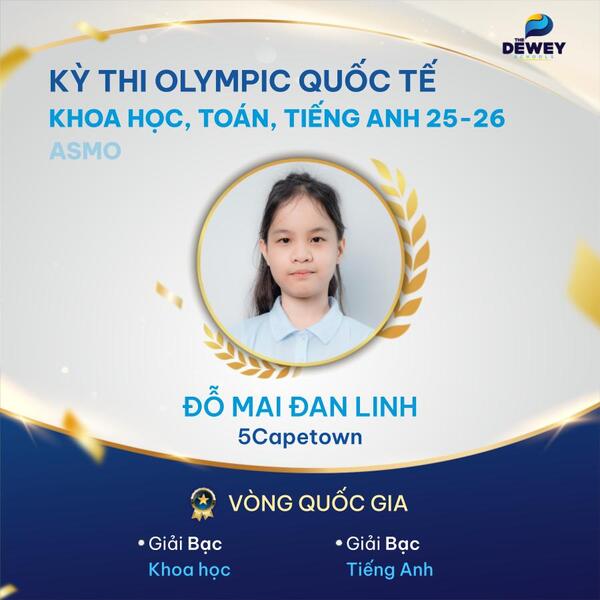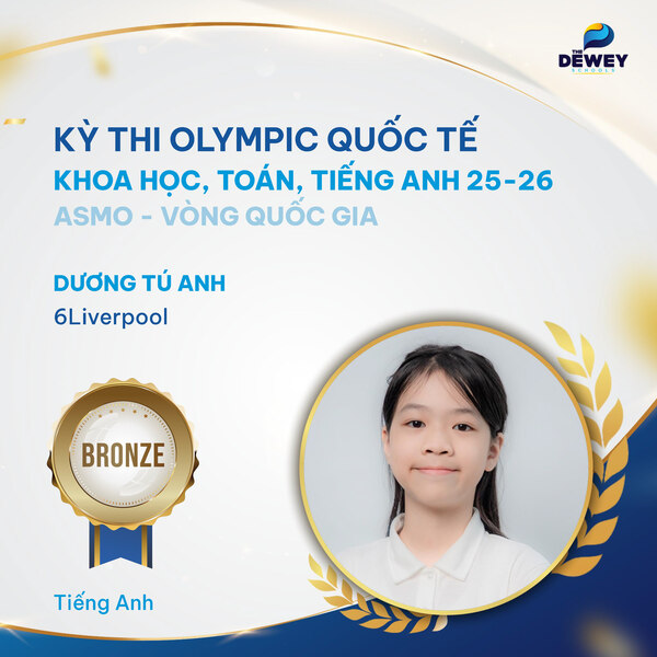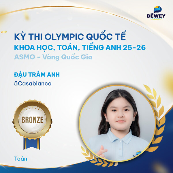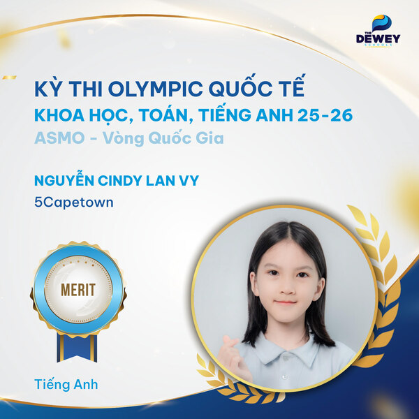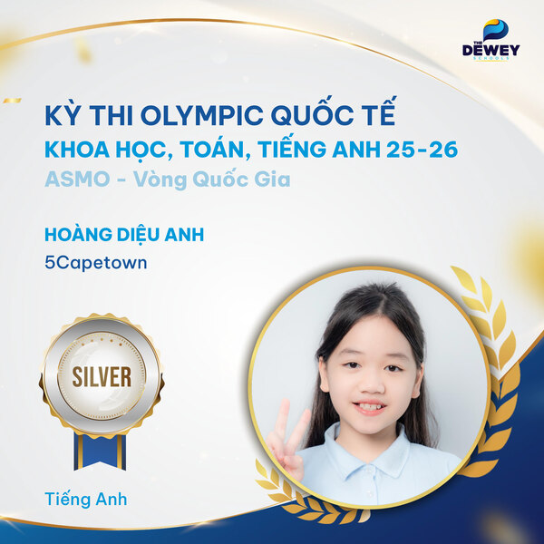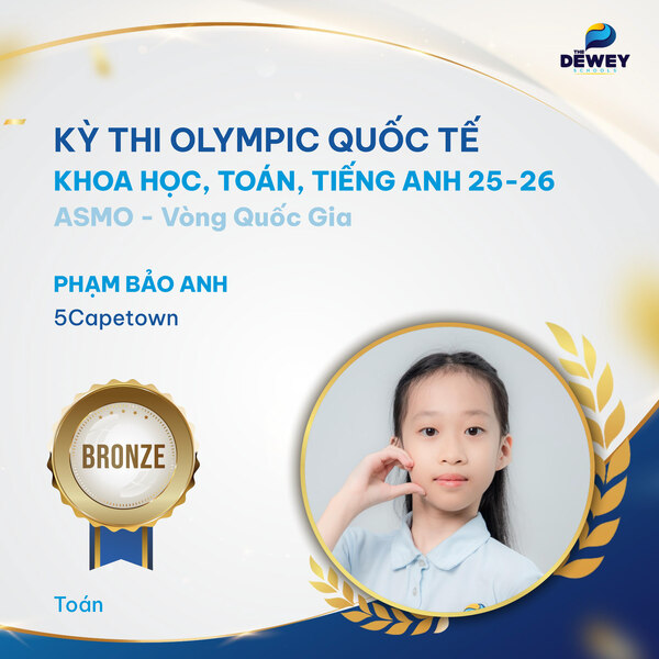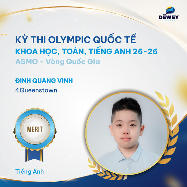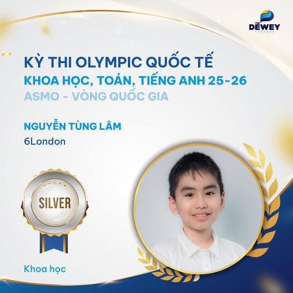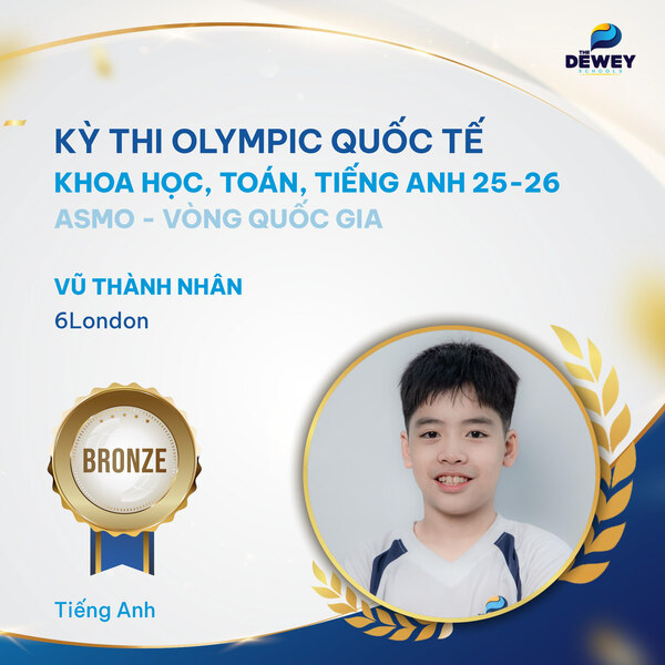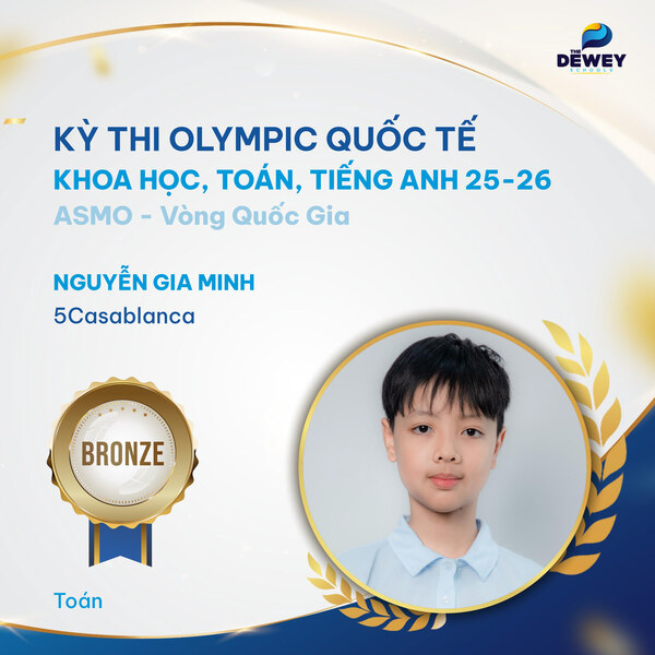 Xin chúc mừng các học sinh Dewey Cầu Giấy đã xuất sắc vượt qua vòng Quốc gia – Kỳ thi Olympic Toán – Khoa học – Tiếng Anh quốc tế ASMO 2025 (Asian Science and Mathematics Olympiad). Những tấm huy chương đã ghi dấu hành trình dài bền bỉ, nỗ lực của các bạn học sinh nhằm chinh phục một sân chơi trí tuệ mang tầm quốc tế.