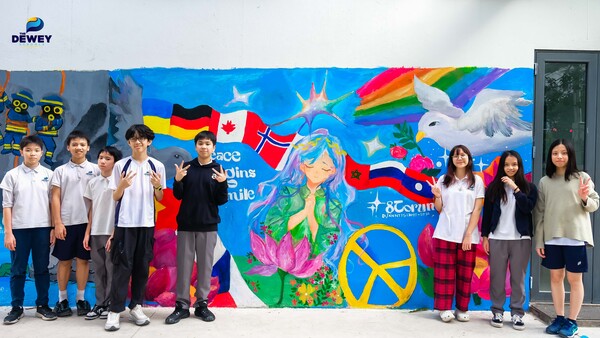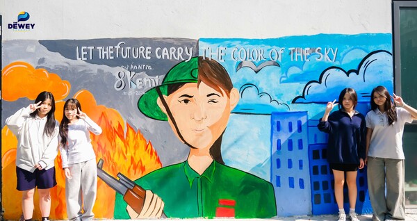 “Peace Begins with a Smile” (Hòa bình từ một nụ cười) – là chủ đề tranh tường của lớp 8Torun. Với các bạn, kết nối toàn cầu không nằm ở những khái niệm xa xôi mà hiện hữu ngay trong sự trân trọng những bản sắc khác biệt. Một nụ cười thấu cảm chính là ngôn ngữ không biên giới đầu tiên để xóa nhòa những định kiến, mở ra một thế giới của sự hòa hợp và lòng tử tế.