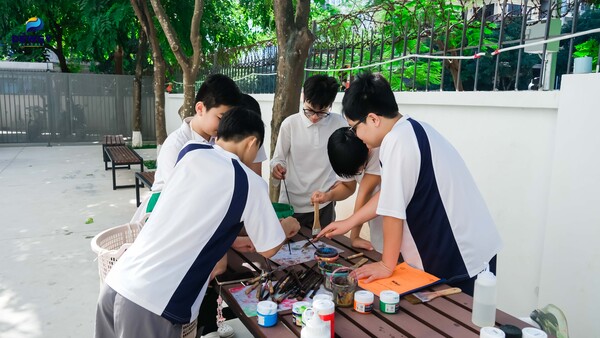 Các bạn được bước ra ngoài không gian lớp học, quan sát từng góc sân trường, tìm những vị trí có thể “kể một câu chuyện” bằng hình ảnh. Mỗi nhóm lại mang theo một góc nhìn riêng: câu chuyện về môi trường, về lòng tốt, về sự thấu cảm, hay về cảm giác bình yên mà ai đó cần trong ngày học bận rộn.
