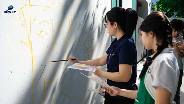 Bản phác thảo đầu tiên đã thành hình. Ánh lên trong từng ánh mắt của các bạn học sinh là sự háo hức khi câu chuyện của mình trở nên sống động trên bức tường quen thuộc mỗi ngày đi học. Cùng chờ đón ngày ra mắt “Những bức tường biết kể chuyện” của học sinh Dewey trong những ngày tới đây nhé!
