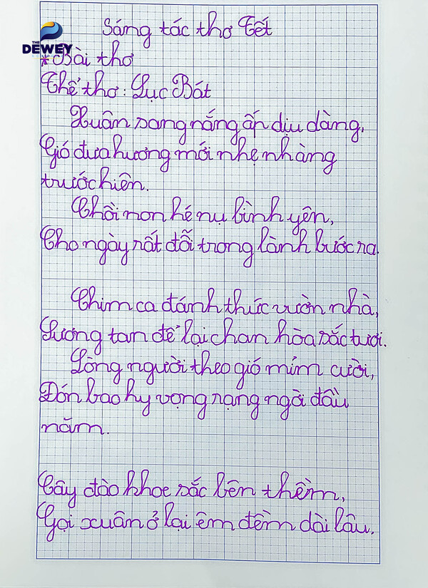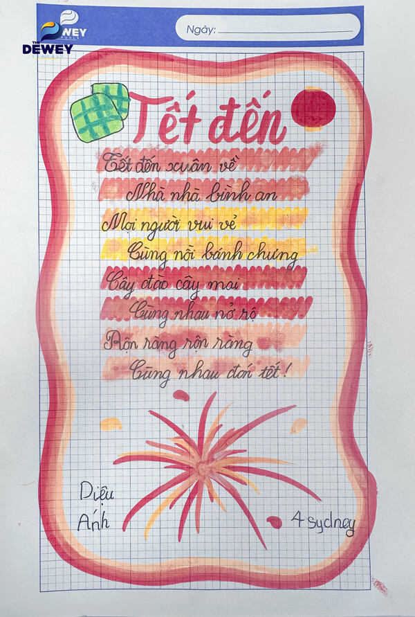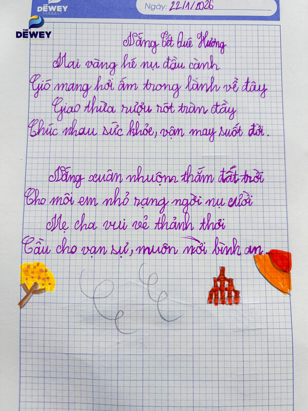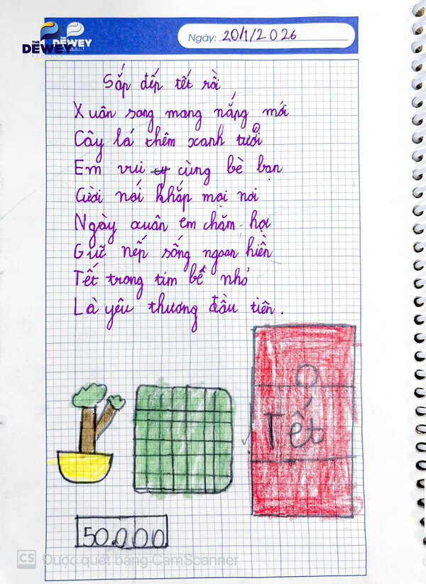 Thân mời Ba Mẹ và Thầy Cô cùng ghé đọc những vần thơ “thơm mùi Tết”, lắng nghe sắc Xuân được các học sinh Tiểu học Dewey Ocean Park gửi gắm bằng tất cả sự hồn nhiên, sáng tạo của mình.