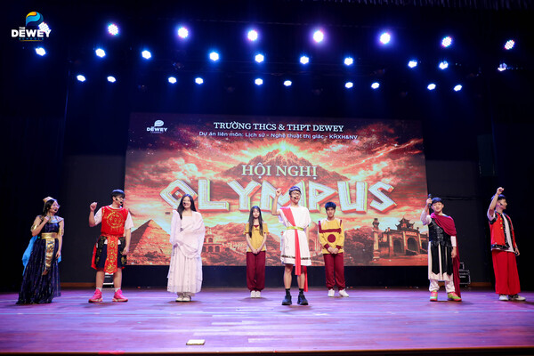 Trong suốt 4 tháng, học sinh khối 10 đã cùng nhau nghiên cứu, tranh luận, sáng tạo và trải nghiệm về những nền văn minh lớn của nhân loại. Những kiến thức tưởng chừng khô khan được sân khấu hóa sống động qua vở kịch “Hội nghị Olympus”. Hóa thân thành các vị thần đại diện cho những nền văn minh, các bạn học sinh đã cùng tranh biện để tìm ra “nền văn minh hùng mạnh nhất”. Các em thể hiện năng lực diễn thuyết và tư duy phản biện khi chỉ ra những thế mạnh và thành tựu tiêu biểu của các nền văn minh cổ – trung đại: từ công trình kiến trúc vĩ đại của Ai Cập, tư tưởng nhân văn sâu sắc của Ấn Độ, triết lý phương Đông của Trung Hoa, tinh thần cộng đồng của Văn Lang – Lạc Việt,…