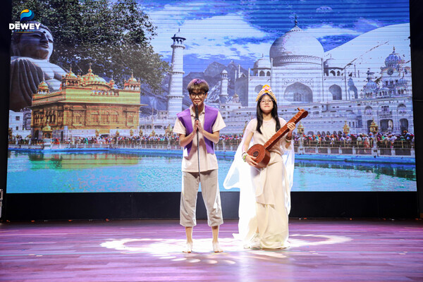 Kim Tự Tháp Ai Cập thách thức thời gian, chân dung nữ hoàng Nefertari kiêu hãnh, những vị thần Hy Lạp đầy quyền uy,… đã biến sân khấu Nhà hát Dewey thành một không rực rực rỡ sắc màu sử thi. Như một cỗ máy thời gian, Dự án liên môn Lịch sử – Nghệ thuật Thị giác – Khoa học Xã hội & Nhân văn “Các nền văn minh cổ – trung đại trên thế giới” của học sinh khối 10 đã đưa khán giả ngược dòng trở về cội nguồn văn minh nhân loại. Không tiếp cận lịch sử bằng việc ghi nhớ những mốc thời gian khô cứng, các em đặt mình vào một câu hỏi lớn của nhân loại: “Con người – với tất cả những thành tựu và sai lầm – có xứng đáng tiếp tục tồn tại?”