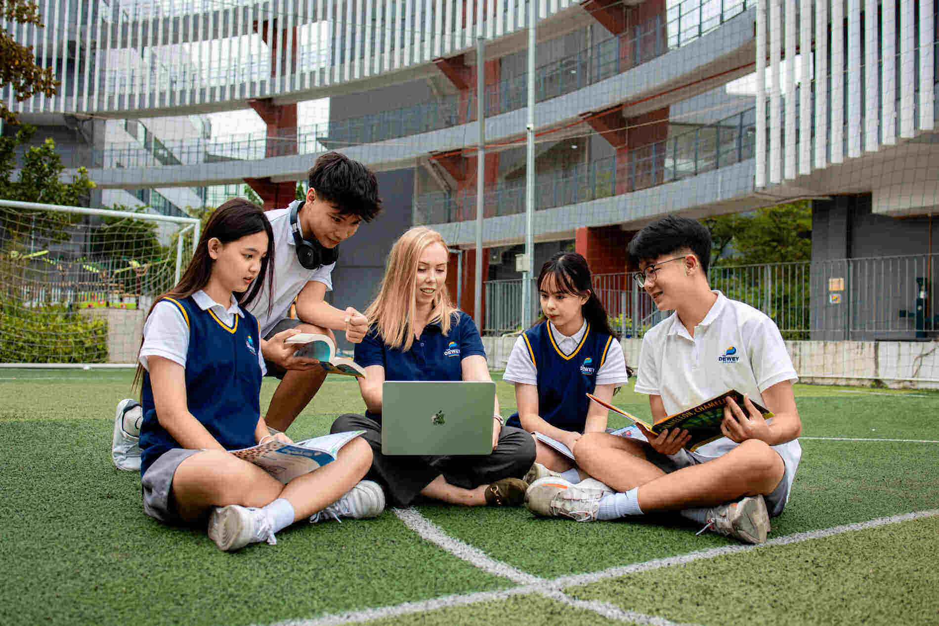 Không bàn ghế, không bảng đen, phấn trắng, những tiết học ngoài trời đã trở thành hình ảnh quen thuộc tại Dewey.