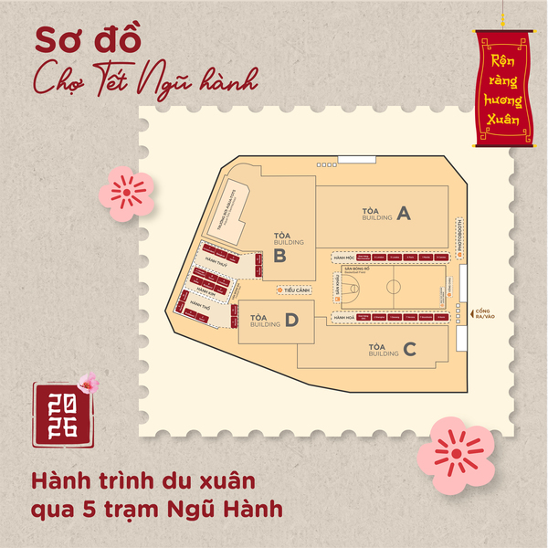 Sơ đồ dẫn lối du xuân: Đừng để mình lạc giữa không khí náo nhiệt! Sơ đồ dẫn bạn đi qua đúng lộ trình 5 trạm trải nghiệm Kim – Mộc – Thủy – Hỏa – Thổ, nơi mỗi điểm dừng chân đều mang một phong vị riêng biệt.