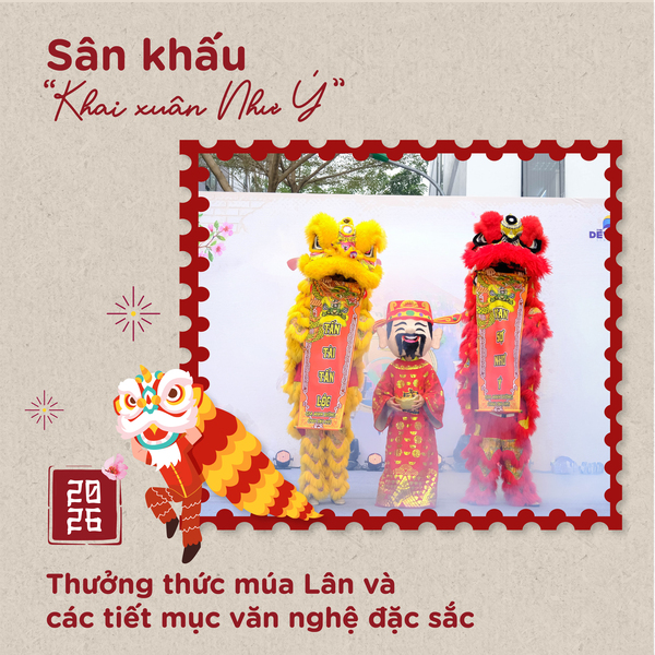 Sân khấu “Khai Xuân Như Ý”: Điểm hẹn của những tiếng trống hội giòn giã, múa Lân và các tiết mục văn nghệ đặc sắc – nơi âm thanh và sắc màu hòa quyện để khởi đầu một năm mới hanh thông.