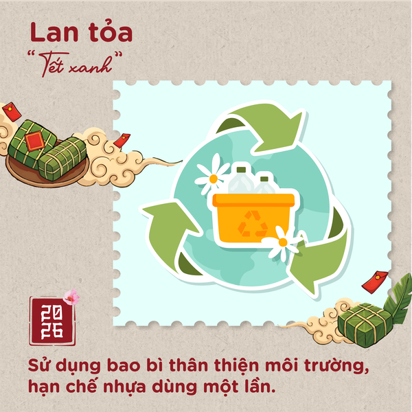 Lan tỏa “Tết Xanh”: Một phiên chợ tử tế bắt đầu từ những hành động nhỏ. Hãy cùng chúng mình sử dụng bao bì thân thiện môi trường, hạn chế nhựa dùng một lần để giữ cho sắc xuân luôn xanh và bền vững.