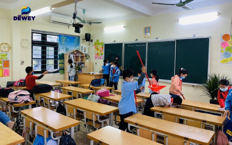 Không chỉ cơ sở vật chất, quá trình học tập và giảng dạy cũng phải đảm bảo vệ sinh. Giáo viên và học sinh cần duy trì lớp học sạch sẽ, sắp xếp bàn ghế gọn gàng, rửa tay trước và sau khi ăn, tránh dùng chung đồ cá nhân.